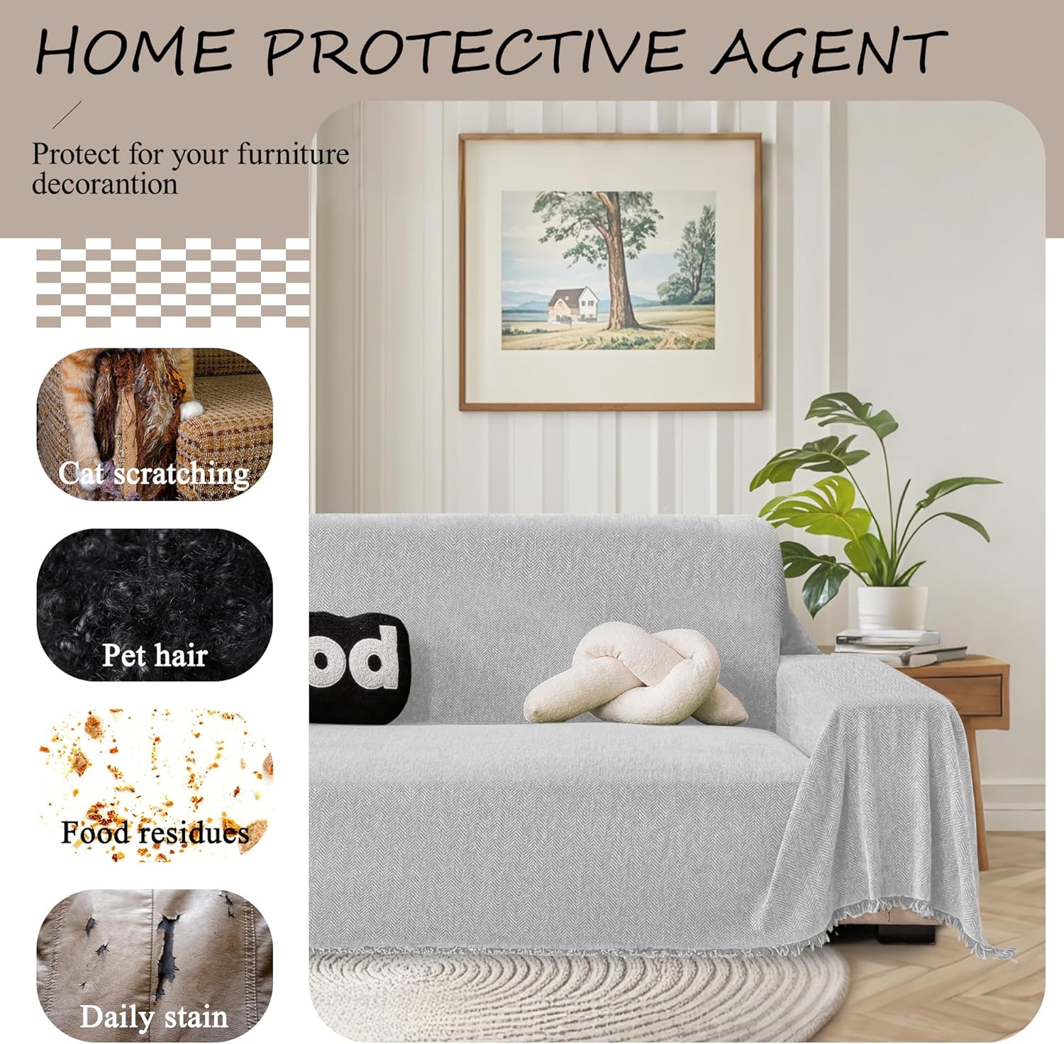 ALIECOM Sectional Couch Covers L Shape Sectional Sofa Cover for Dogs 2 Piece Thick Chenille L Shaped Couch Cover Blanket Chaise Sofa Slipcovers Pet Furniture Protector Washable (XX-Large, Air Grey)