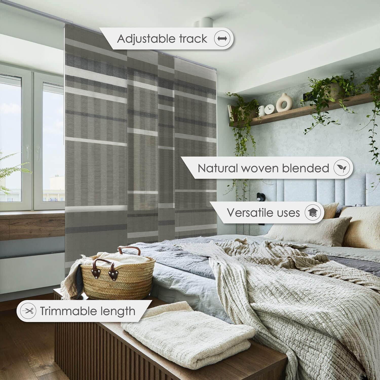 GoDear Design Adjustable Sliding Panel Track Blinds for Doors 45.8"- 86" W x 96" H, Extendable Vertical Blinds for Sliding Glass Doors, Trimmable Natural Woven Fabric Vertical Shades, Dusty Miller