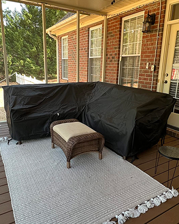 Our outdoor furniture covers are made of waterproof fabric with sealed and reinforced seams. Placing items (e.g., buckets, airbags) in areas where water tends to pool can help water flow and keep your patio sofa cover to maintain optimal performance.