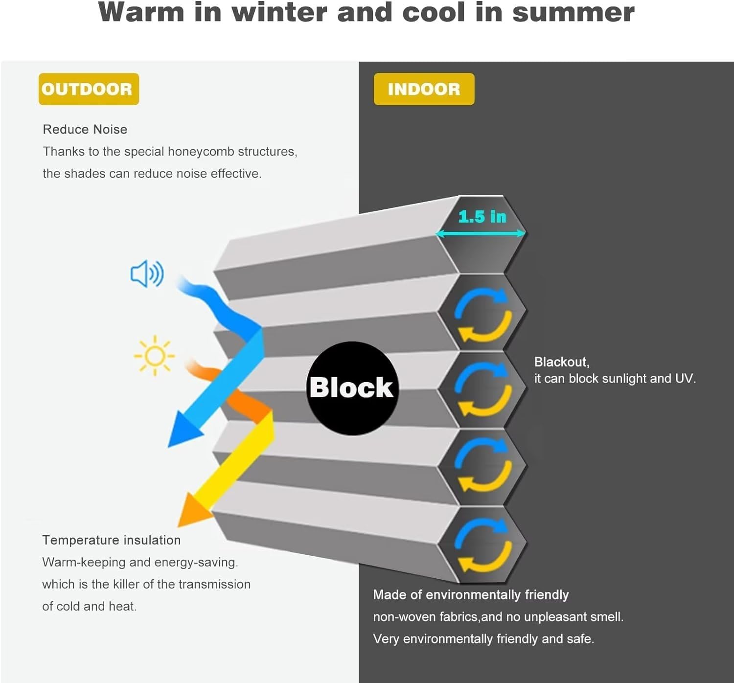 This video will show you the main functions and features of honeycomb shades, blackout effect demonstration, heat insulation and heat preservation energy control, while it has now been upgraded to a cordless system for safety.