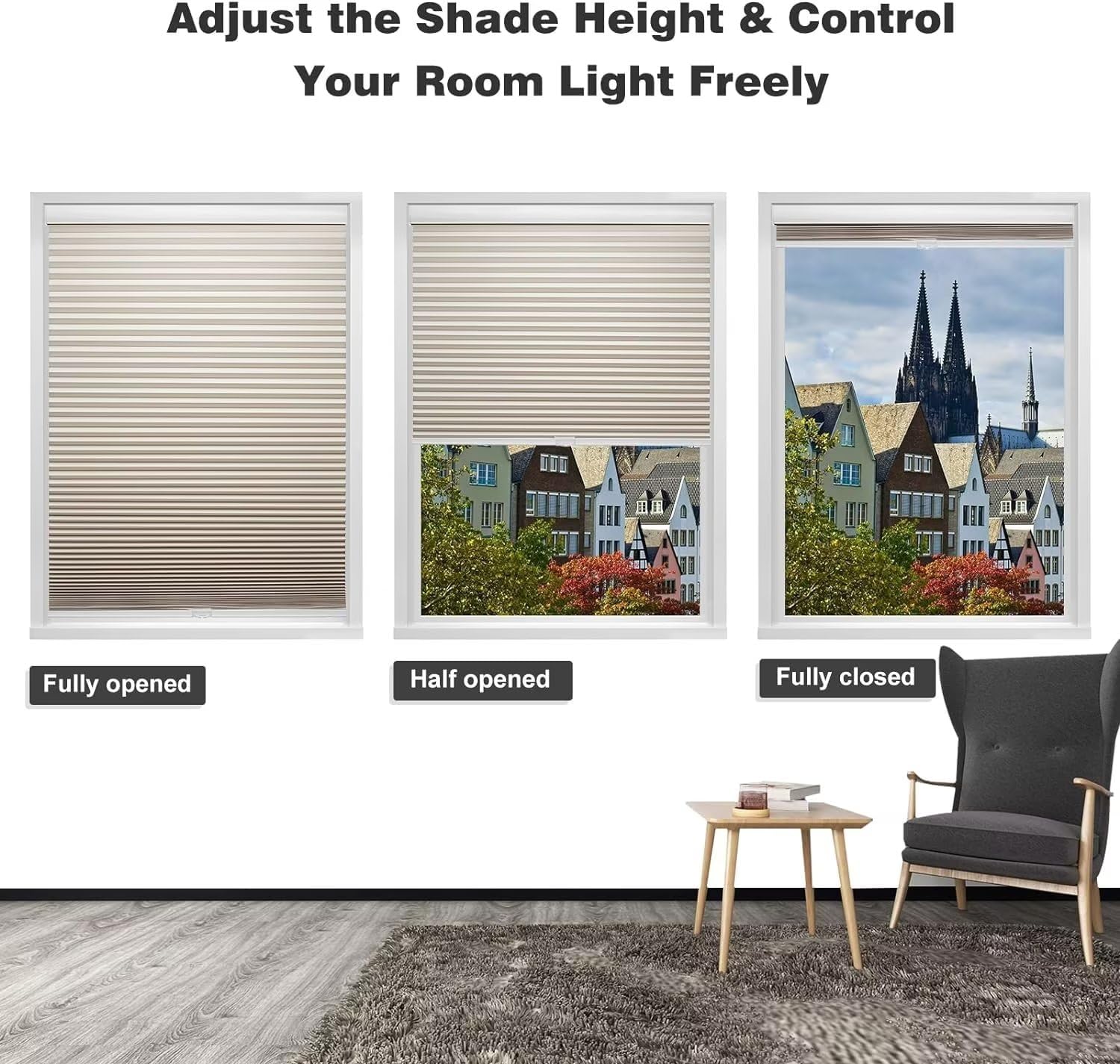 MYshade Blackout Cordless Cellular Shades Honeycomb Shade for Indoor Windows Room Darkening Blinds for Home Office Pull Down Window Shades Easy to Install 72 inch Wide, H72 Beige Pleated Shade