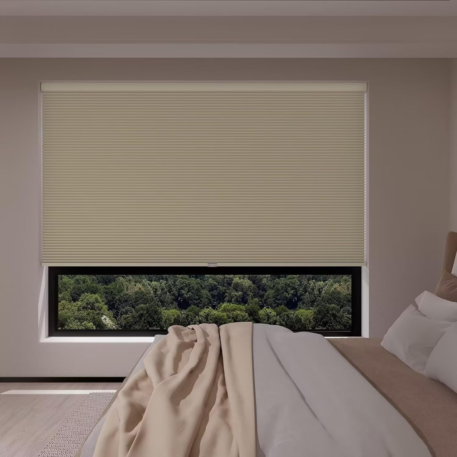 MYshade Cordless Blackout Window Blinds & Shades Pull Down Room Darkening Window Shades Light Blocking Honeycomb Cellular Shade for Indoor Windows Easy to Install 70 inch Wide, H72 Beige Blinds