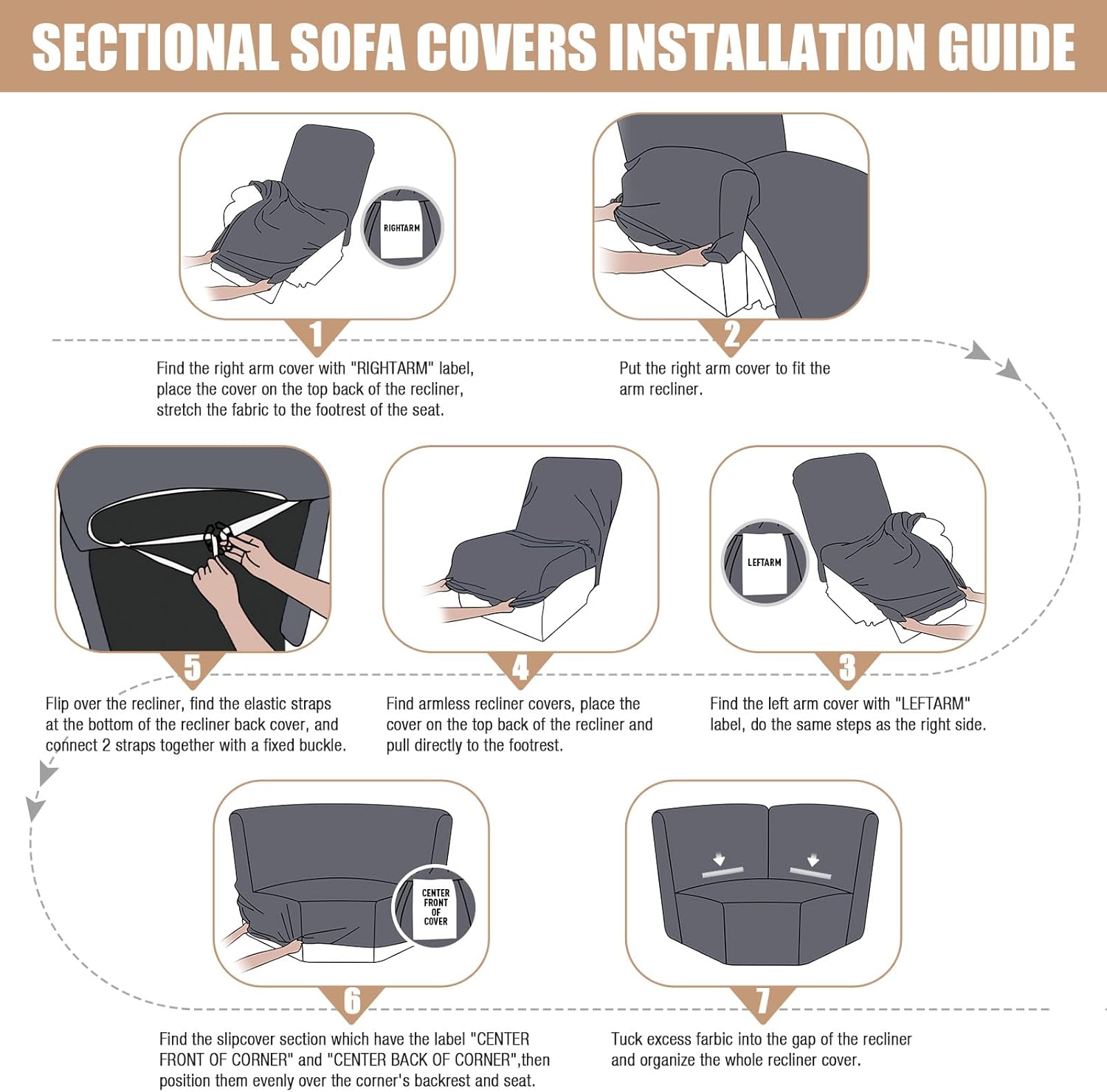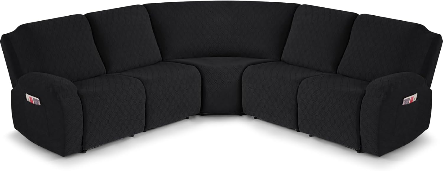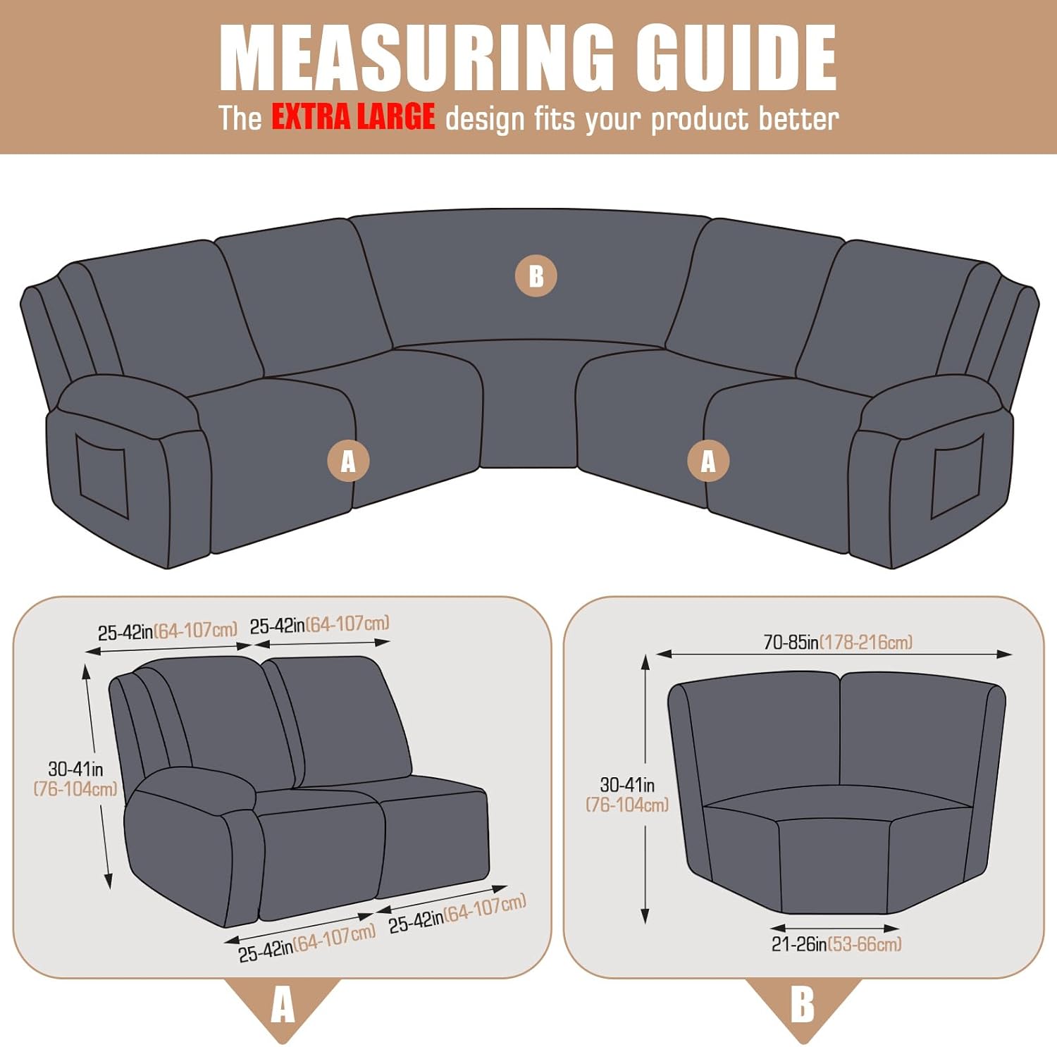 VANSOFY Extra Large Reclining Sectional Couch Covers, Washable 5-Piece Sofa Covers for L Shape Sectional Sofa Corner Seater, Thick, Soft Sofa Slipcovers (5 Seat Recliner Cover, Navy Blue)